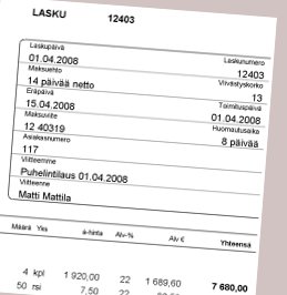 Laskutus tulostaa laskut, vie ne puolestasi myyntireskontraan, päivittää myyntitilastot ja tekee kirjanpidon ja kustannuslaskennan tapahtumat nopeasti ja vaivattomasti.